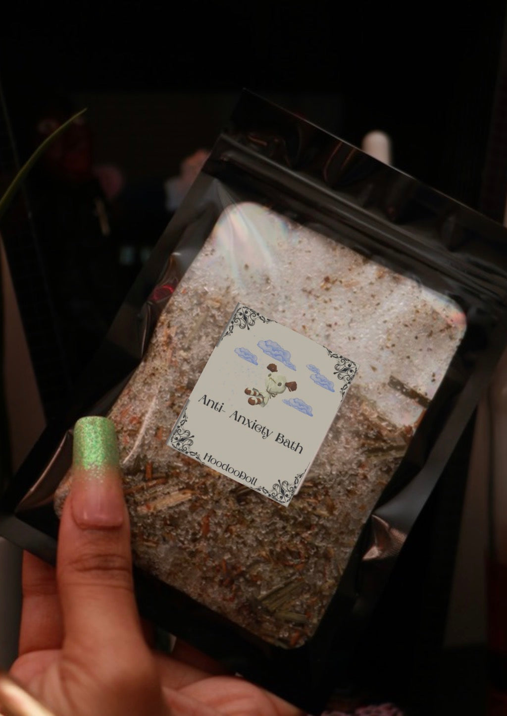 This is conjured to relieve anxiety and stress. In rootwork everything is treated as a spirit even stress and anxiety. I love this blend and use it bi-weekly to bring mental peace and calmness,. There are a combination of herbs and roots to banish the spirit of stress and anxiety included within this bath. This bath comes with instructions on how to use!