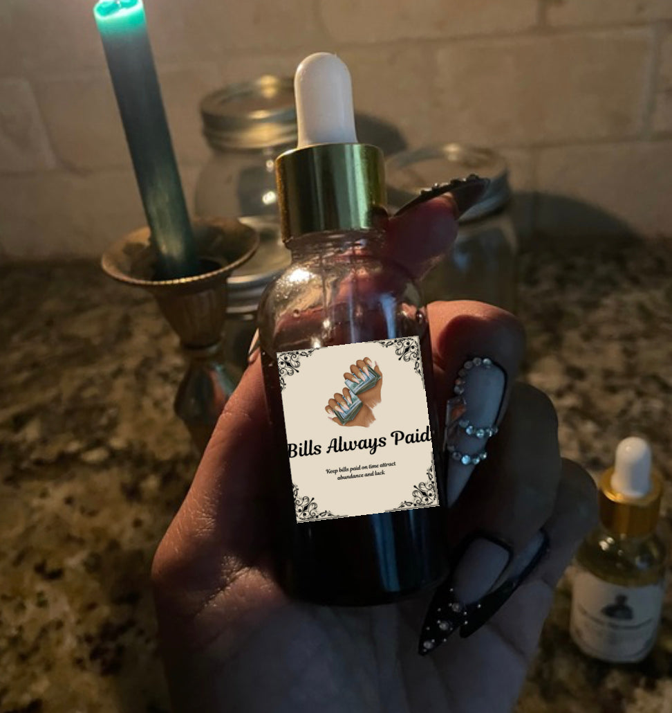 This conjured oil is formulated to attract wealth and keep wealth. It is spelled to keep bills paid with ease and peace.